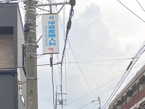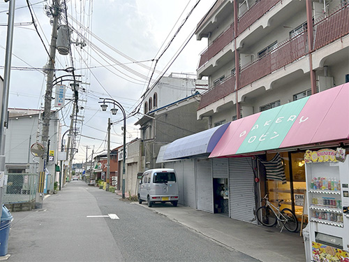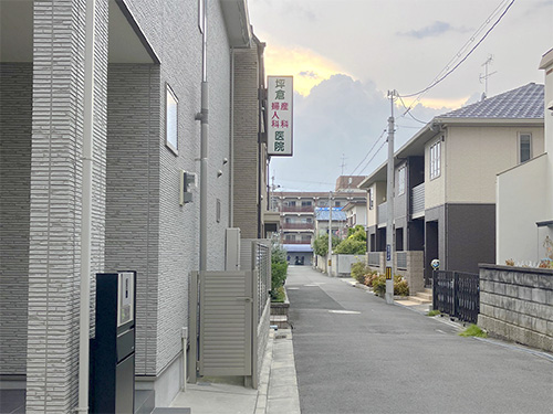 - 中央環状線若江東交差点を東へ、最初の一時停止を右折すぐ(電柱に案内看板あり)
